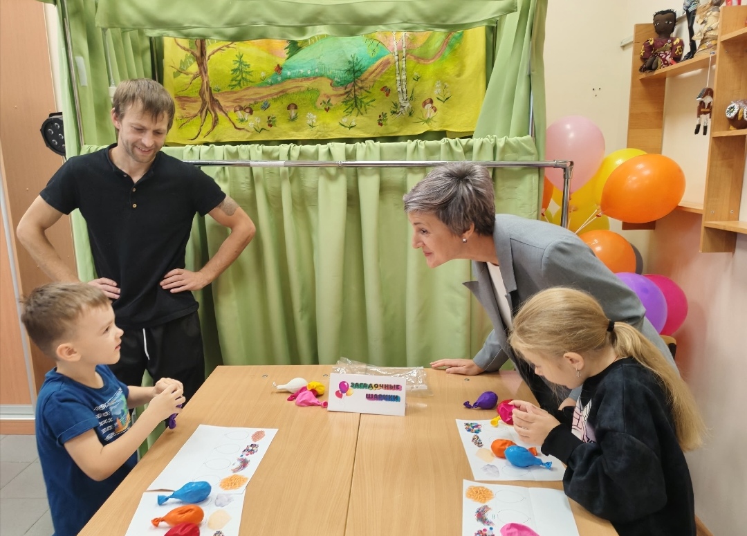 Кто-то из ребят самостоятельно, кто-то при помощи взрослых составили «непослушные буквы» в слова с помощью трубочки, разгадали наощупь, что спрятали педагоги Центра в воздушные шарики, изготовили из воздушного шарика собачку – друга человека и сделали себе на память о сегодняшнем мероприятии значок на память.